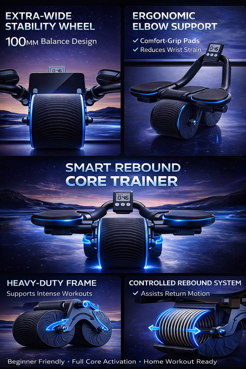 Basic ab rollers rely entirely on strength and balance. The CoreTech trainer adds assisted return and a stabilized wheelbase, helping you perform cleaner repetitions while reducing unnecessary strain.